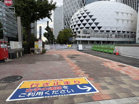 なお、スバルビル跡地には新宿駅西口駐車場出入口が整備されました。そのため、車道脇の歩道は行き止まりとなっており、駅から見て駐車場出入口の右側に歩道が設けられています。