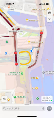 そのため、小滝橋通り・青梅街道側から駅前へと来た車両は、小田急ハルク前で右折しなければなりません。さらにその先の突き当り(エルタワー前)も左折はできないため、青梅街道方面へと戻っていくことになります。