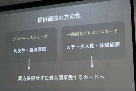富裕層の拡大とキャッシュレスの拡大という大きな流れとともに、同社のナンバーレスシリーズの利用者からもポイント還元の引き上げを求める声があがっており、プラチナカードの「特別な体験」との両立がテーマになってきたという。一方で、新たな富裕層は「従来の年代や職業だけで判断することは難しくなっている」として新たなサービスが求められているという。