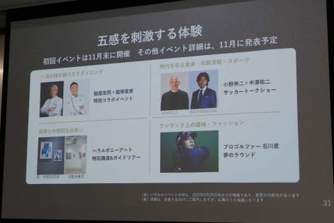 会員限定イベントも予定しており、Visaスポンサーシップを活用したスポーツプログラムなどを展開。第1弾として「ミラノ・コルティナ 2026冬季オリンピック」で、会員限定のプログラムを実施する。また、小野伸二×中澤佑二サッカートークショーや、歌舞伎町大歌舞伎特別鑑賞会など音楽・伝統芸能・スポーツに関する催しや、仁和寺の紅葉ライトアップ、プロゴルファー石川遼選手との特別ラウンドなどを会員限定で展開予定。こうした限定プログラムを月2回は実施していくという。