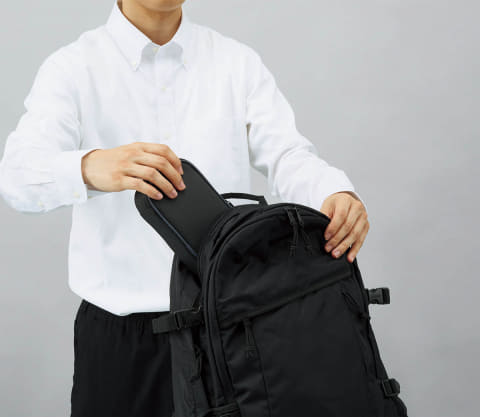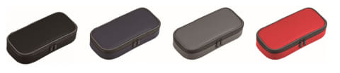 カラーはブラック、ネイビー、グレー、レッドの4色。サイズは210×100×45mm(幅×奥行×高さ)。