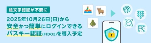 なお、パスキー認証が利用できない利用者には、引き続き、ログインID・パスワードと、絵文字「ログイン追加認証」でのログインを提供。絵文字「ログイン追加認証」もセキュリティの強化のため、現在の認証コード2文字選択制から4文字選択制に変更する。この変更は11月末を予定している。
