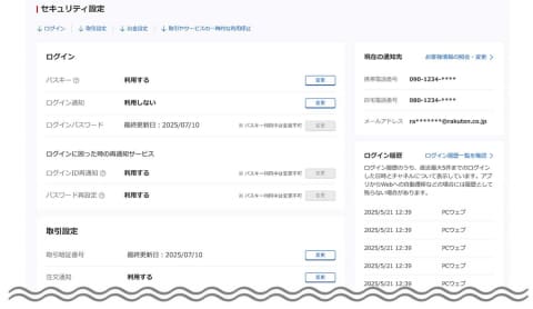 さらに、注文発注時にメールで知らせる「注文通知」も提供開始。現在提供している「約定通知」だけでなく、国内株式、中国・アセアン株式などを対象に、注文発注時の通知も任意で設定できるようになる。「セキュリティ設定」画面もリニューアルし、わかりやすく改善する。