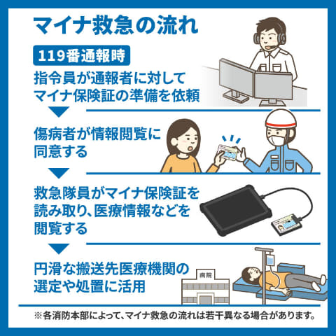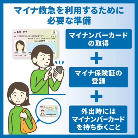 マイナ救急を活用するには、傷病者がマイナ保険証の利用登録を完了し、かつ搬送時にマイナンバーカードを所持している必要があります。そのため、マイナンバーカードを持ち歩くよう呼び掛けているのです。