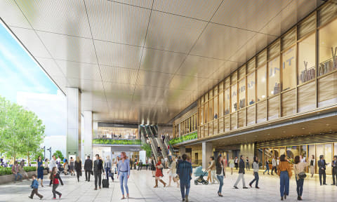 また、国道15号(第一京浜)に面する交差点をスクランブル化。安全性向上、滞留空間の拡張などを図る。2033年には緑地広場を整備する予定。
