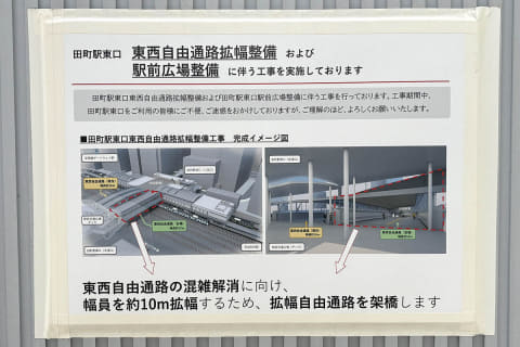 なお、JR田町駅では東口側でも、東西自由通路拡幅整備および駅前広場整備が進められている。
