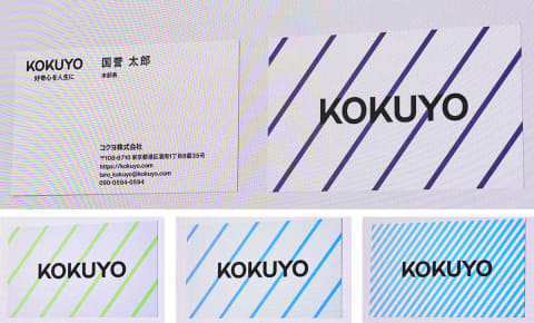ロゴは並べ方と組み合わせ方によって様々なパターンで展開でき、事業の広がりと、強くしなやかな可能性を表現している。社員の名刺もこのロゴを活かして一新。1人の社員が複数種類のデザインの名刺を持つこととなり、その時々で渡される名刺が異なることとなる。また、紙袋やバッグなどでも同様に様々なパターンを製作する。そのほか、コクヨの人気アイテムの1つ「測量野帳」でも多様なデザインを用意する。