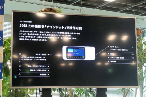 スマホアプリとも連動しており、来客時はスマホで応対することも可能。家電の操作はナインドット本体だけでなく、スマホアプリからも行なえる。対応する家電は、赤外線リモコンで操作できる製品。