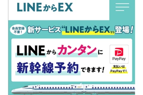 東海道・山陽・九州新幹線のネット予約サービス「LINEからEX」が4日からスタートする。LINE上で新幹線を予約でき、支払いはPayPayに対応する。受け付け時間は5時30分から23時30分、予約受け付け期間は乗車日1カ月前の10時から、乗車当日の時刻表に表示された所定発車時刻4分前まで。