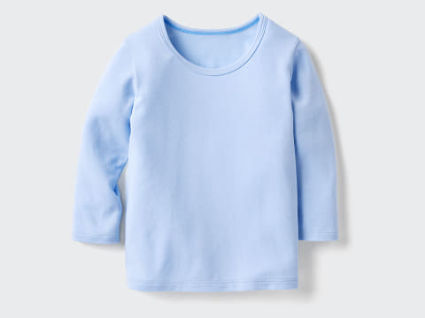 ベビーからは、赤ちゃんのための「ヒートテックコットンクルーネックT」を発売。肌面に100%使用しているコットンは、メンズ・ウィメンズ・キッズのヒートテックコットンよりも細い糸で編むことで、軽く薄手な生地としている。