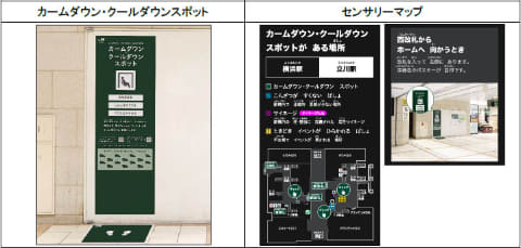 あわせて、光や音、におい等の五感に関する情報を、地図として表示した「センサリーマップ」を設置する。駅の感覚情報やカームダウン・クールダウンスポットの位置をWebページ上に試験公開し、駅利用者が事前に情報を確認できるようにする。