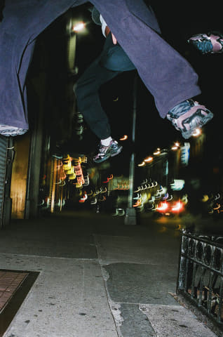 一見するとダークトーンでまとめられたカラーリングながら、アッパーはディテール毎に微配色、異素材使いとなっている複雑な構成。俯瞰で見ると大きな無機質の塊でも、実際は刻一刻とさまざまな表情の変化を持つ都市の風景を表している。ヒールにはアスファルトに滲んだオイルの反射をイメージした、七色に変化するリフレクターを搭載した。