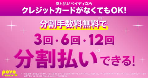 povo2.0ではまた、Paidyが提供するあと払いサービス「ペイディ」の「6回あと払い」「12回あと払い」を、期間限定ではない支払い方法として拡充する。対応は11月1日から。分割手数料は、口座振替か銀行振込では無料。