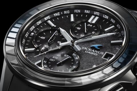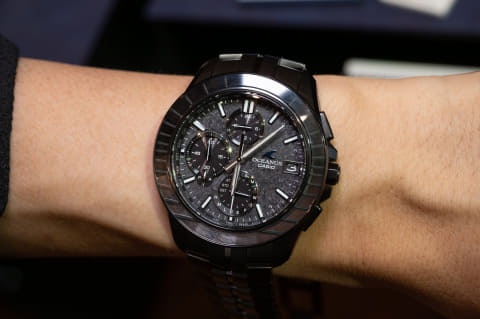 カシオ・オシアナス、ブラックの江戸切子ベゼルで月と海を表現