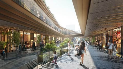 大井町駅前に大規模複合施設や広場を整備し、大井町エリア全体の新たな賑わい創出、歩行者ネットワーク整備や防災分野などで災害に強く環境に配慮したまちづくりを目指すプロジェクト。駅としながわ中央公園方面のエリアをつなぐ重層的な歩行者デッキと、東急大井町線高架下に開発街区と南側のエリアをつなぐ通路を整備し、まちの回遊性を高める。
