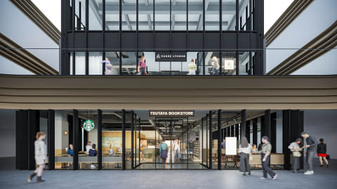 TSUTAYA BOOKSTOREではビジネス書を中心に豊富な品ぞろえとするほか、ライフスタイル雑貨も取り扱う。同店内にもスターバックスを設置し、BOOK & CAFEスタイルの書店として展開する。SHARE LOUNGEでは、半個室・会議室やオープン席を設けるとともに、フリードリンク・スナックなどアメニティを用意する。