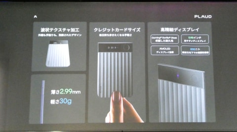 初代Plaud Noteは、クレジットカードサイズの薄型デザインが特徴。スマートフォンにマグネットで吸着させて一緒に持ち運ぶことで、対面会話のほか、スマートフォンでの通話も高音質で録音できるデバイスとして展開された。今回発表された「Plaud Note Pro」は、先代モデルをベースにハードウェア・ソフトウェアをフラグシップ級に強化したモデル。これまで手動切替が必要だった対面と通話録音のモード変更が自動で行なわれるほか、要約や集音・録音技術も強化している。