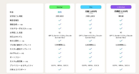 アプリは10月9日にリリース予定。録音サービスでは、月300分まで文字起こしが可能な無料のスタータープラン、月1,200分のProプラン(年額 16,800円)、および無制限のUnlimitedプラン(年額 40,000円)が用意される。Ask Plaud、業界用語集、カスタム要約テンプレート機能はProプラン以上で利用できる。