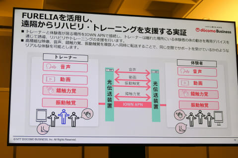 今後、協業しているミライセンス(村田製作所の子会社)と共同し、「FURELIA」を活用。異なる拠点間で体験ができる特徴を活かし、IOWN APNを使った高精細な映像伝送コミュニケーション技術の「OPEN HUB WINDOW」などとも組み合わせてリハビリと健康増進の活用、遠隔地からの旅行体験、行動支援、レッスンサポートなどユースケースを広げて検証を進める予定。それ以外にも小売など、さまざまなユースケースが考えられるのではないかと仮説を立てて考えているという。具体的なビジネス立ち上げ時期は未定。