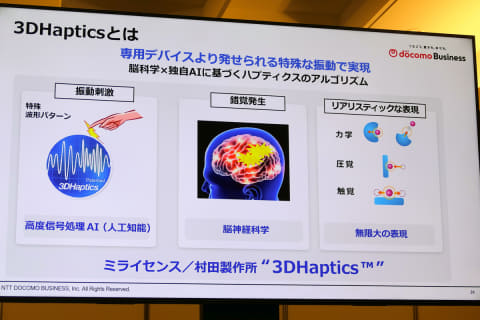 通信会社であるNTTドコモビジネスが今回提案したのは、通信による音声と映像に加えて、触覚など別の感覚を伝送することで、新たなコミュニケーション・サポートサービスを実現すること。