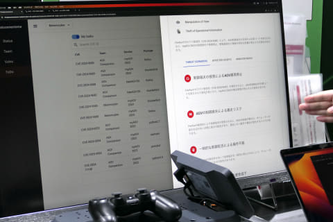展示では、ソフトウェア資産および脆弱性の管理において事業や人命の影響を考慮した優先度をLLMが算出する様子が、小型AGVの管理を例として紹介された。