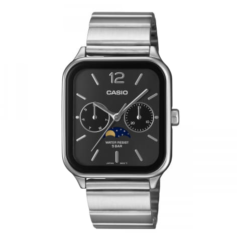 カシオから新型アナログ時計 スクエア・ムーンフェイズ
