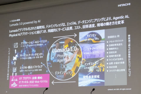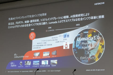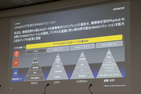 同社は、顧客データから価値を生み出すデジタル基盤「Lumada」を拡張し、フィジカルAIとエージェントAI、そして自社のドメイン知見を統合した「Lumada 3.0」を推進している。HMAXはその具体化であり、社会インフラの革新を目的としたAI強化ソリューション群として24年11月に展開された。