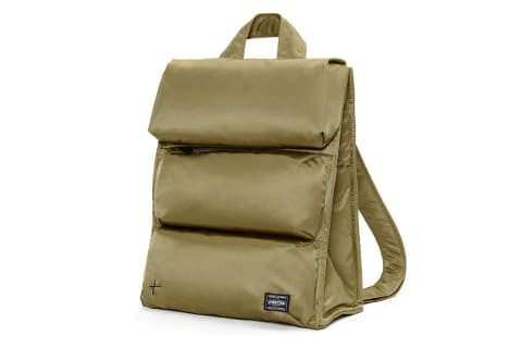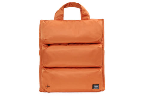 バックパック、トートでは、Toogoodのシグネチャーであるふっくらとした立体的なデザインを、PORTERらしいナイロンツイルで表現した。カラーは、フリント(ブラック)、カーキ、タンジェリンの3色展開(バックパックはフリント、カーキの2色)。