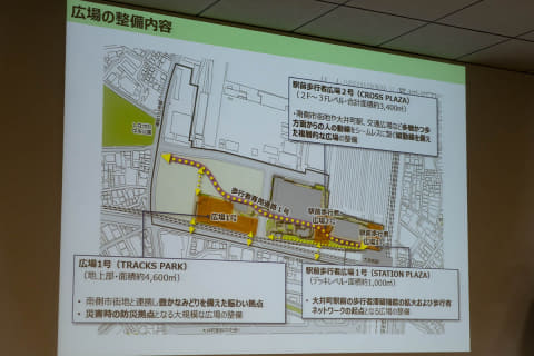 今回見学できたのは、JR大井町駅の新改札口「トラックス口」と繋がる駅前広場「STATION PLAZA」、普段は交流拠点、非常時には避難場所として機能する広場「TRACKS PARK」、およびオフィスタワー22階のオフィスフロア。