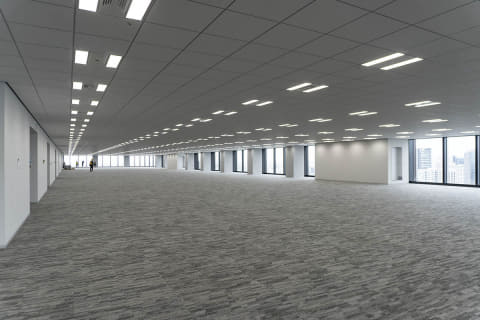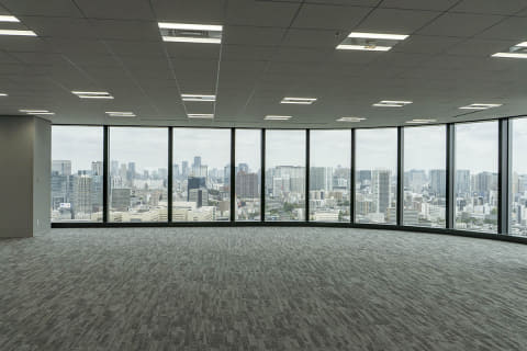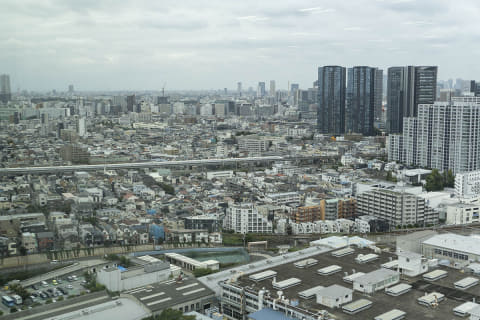 オフィスタワーの貸床面積は1フロアあたり約5,000m2で、都内最大級になるという。今回のオフィスタワー22階から見る眺望は、レジデンスの上層階からの眺めもイメージできる。