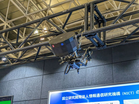 NICT(情報通信研究機構)のブースでは、立ち位置によって異なる言語の翻訳音声が聞こえるデモを体験できる。