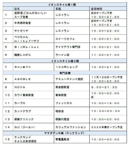 このほか専門店には、英会話教室、音楽教室、理容店がオープン。26年春にはGUも出店予定。