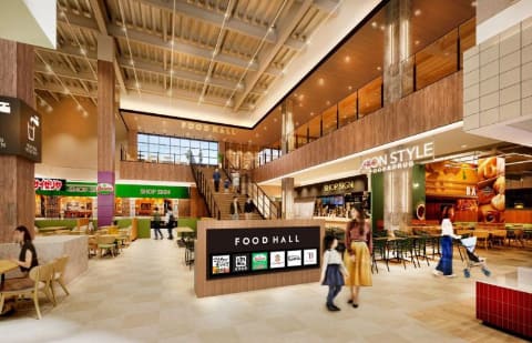 イオンスタイル棟の営業時間は、1階食品売場が8時~23時、2階の日用品売場が9時~21時。専門店数は26年春時点で、3棟で計15店舗。営業時間は各店舗によって異なる。