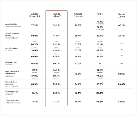 同社が10月初旬に発表した上位モデル「Claude Sonnet 4.5」との連携運用も可能。例えば、Sonnet 4.5が複雑なタスクを複数の小タスクに分割し、それぞれをHaiku 4.5が並列で処理することで、処理効率の最大化が期待される。