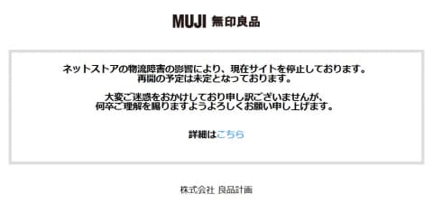 良品計画は、「無印良品」のECサイトにおいて物流障害が発生していることから、10月19日21時よりサイトの運用を停止している。再開時期は未定。