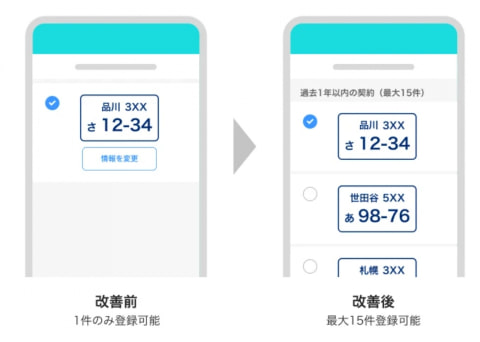 例えば、自宅に2台の車があり家族で交代して運転する場合や、普段は親の車を使い、休暇中には友人の車を借りるようなシーンでも、ナンバーを都度入力することなく簡単に切り替えられる。