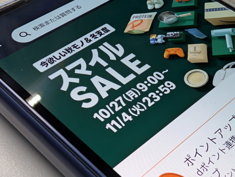 Amazonは、10月27日9時から大規模セール「スマイルSALE」を開始しました。期間は11月4日23時59分まで、秋モノ、冬支度商品を中心に多数の商品がセール対象となっています。