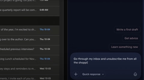 新たに加わった「Copilot Actions」は、自然言語で操作を指示できる。たとえば「メールの受信トレイを調べてもらう」、「レストランを予約してもらう」、「ショッピングサイトのメルマガの購読を解除する」といったことが可能。Copilotは与えられた指示に対して、ブラウザが必要なページを開いて手続きを代行する。