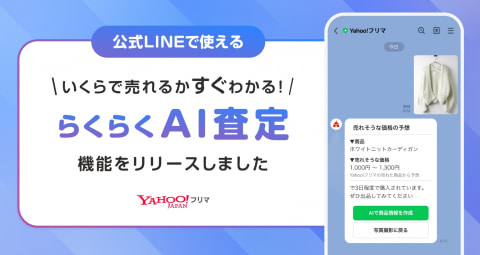 LINEヤフーは10月27日、フリマアプリ「Yahoo!フリマ」において、LINE公式アカウント上で商品画像を送ると相場価格やカテゴリ情報をAIが自動で提案する「らくらくAI査定」を提供開始した。利用は無料。