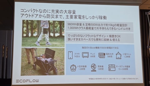 DELTA 3 1000 Airは、容量960Whで1,000Whクラスのポータブル電源としては世界最小・最軽を謳う。