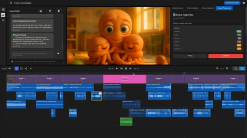 音響分野では、動画の映像・テンポ・トーンを解析し、AI「サウンドデザイナー」と対話しながら多層的なサウンドスケープを生成する「Project Sound Stager」および、ノイズ除去や声の分離、発音ミスの修正をAIで瞬時に行なう「Project Clean Take」を披露した。