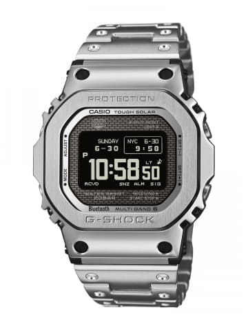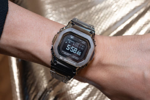 裏蓋は初代G-SHOCKと同じスクリューバックが採用され、バンド接続部は「GMW-B5000」で強さが実証された3本足構造を採用する。各パーツはミラー仕上げとヘアライン仕上げに磨き分けが施され、金属の質感を強調している。