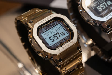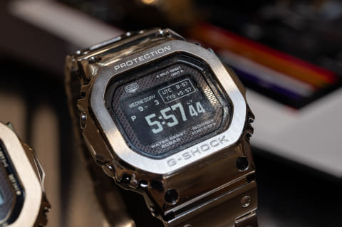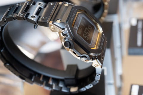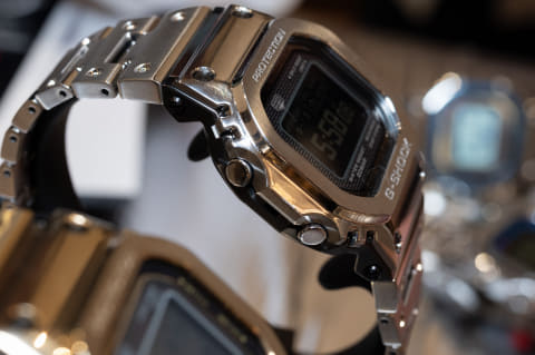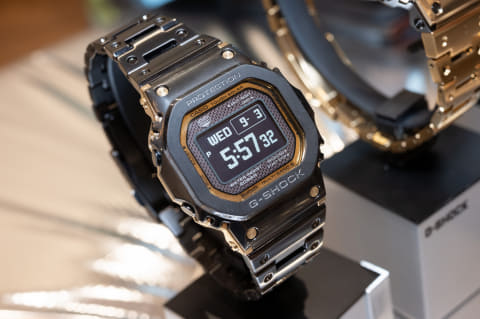 40年以上にわたり蓄積されたG-SHOCKの耐衝撃データをもとに、人とAIが共創した開発手法を構造と外装設計に採用。初代G-SHOCKのデザインを受け継ぐ5000シリーズがベースで、フルメタルG-SHOCKとして今までにないデザインになっている。