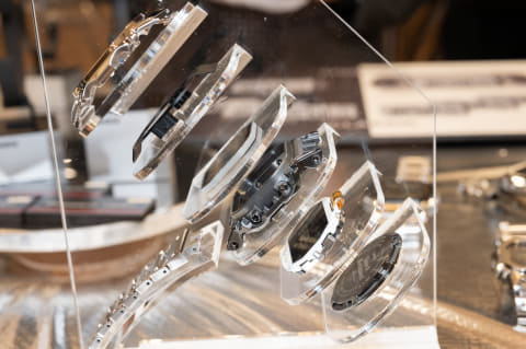 この新構造により、側面からの見た目は複雑な造形のメタルパーツが噛み合うデザインになっているほか、2つのパーツを結合するフロントビスなど、今までにない外装デザインになっている。
