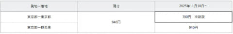 同一都道府県内運賃は、これまでは地帯別の運賃区分だったところ、都道府県別に細分化した料金体系。同一の都道府県内を発着する宅急便を対象にした運賃区分を新設する。例えば、60サイズの荷物を東京都から東京都・群馬県に送る場合、現在はいずれも940円(現金決済)だったが、11月10日からは東京都へは790円(現金決済)で送ることができる。群馬県への発送は現在と同様の940円。