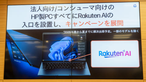 楽天グループと日本HPは、AIエージェント「Rakuten AI」のデスクトップ版導入に関する協業を発表した。2026年春~夏より、日本国内で販売するHP製の個人・法人向けPC(ゲーミングPCを除く)にデスクトップ版Rakuten AIをプリバンドルした状態で順次販売する。