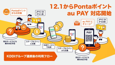 KDDIとHashPortは、12月からPontaポイントをステーブルコインなどに交換できるサービスを提供する。