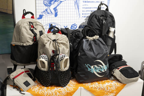 ストリートバッグブランドのEDGELINK(エッジリンク)からは、ダンスクルー「EDGW CYPHER(エドガワサイファー)」と共同開発した「クラム ザ サイファー」が登場。ヘッドフォンを取り付けられるホルダーや、ダンスシューズを魅せながら持ち歩けるポケットなど、ダンサーが欲しい機能を搭載した。サコッシュ、ボディバッグ、ショルダーバッグ、ナップサック、リュックをラインアップし、予定価格は2千円台後半から9千円台後半。リュックはPC用のスリーブポケットを備える。