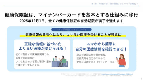 2025年12月1日、全ての健康保険証の有効期限が満了を迎える。これにより、健康保険証は、マイナンバーカードを基本とする仕組みに移行する。