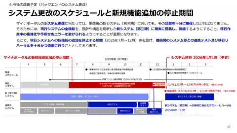 そのため2026年1月1日にマイナポータルバックエンドシステムの更新を行なう。25年7月から12月は現行システムへの新機能の追加を停止し、現在はテストを行なっている段階。システム更新の目的は、「システムの疎結合化」「運用保守費用の削減」「安定したサービスの実現」で、更新後は「想定されるアクセス数の数倍には耐えられる」規模に強化される予定だ。